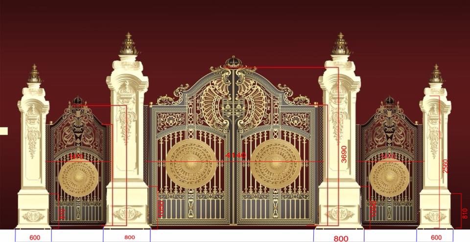 + Cổng nhôm đúc không rỉ sét,chống ăn mòn.