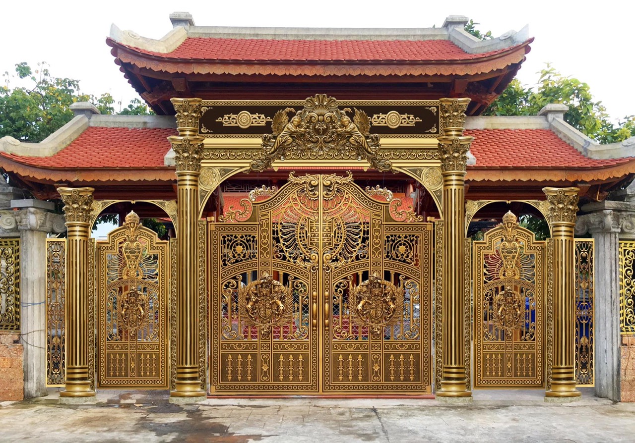 + Cổng nhôm đúc không rỉ sét,chống ăn mòn.